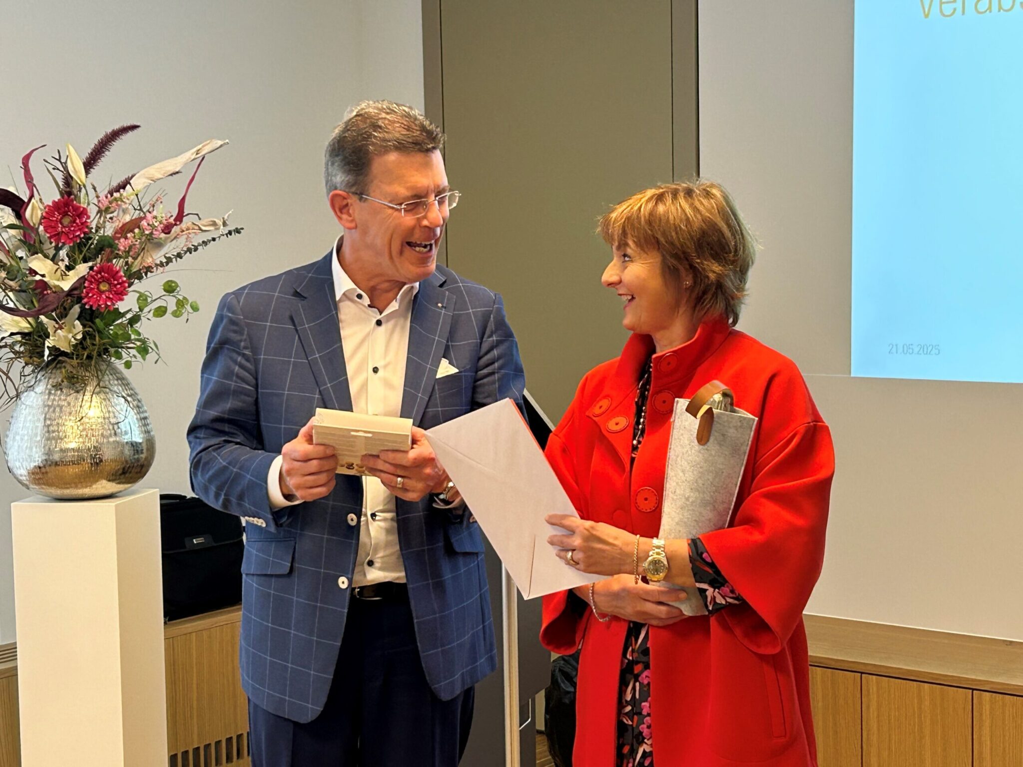 Aus diesem Grund haben wir Ruth Metzler-Arnold anlässlich der Generalversammlung der Hinderer Holding gebührend verabschiedet (siehe Foto: Adrian ILL, Verwaltungsratspräsident, und Ruth Metzler-Arnold).